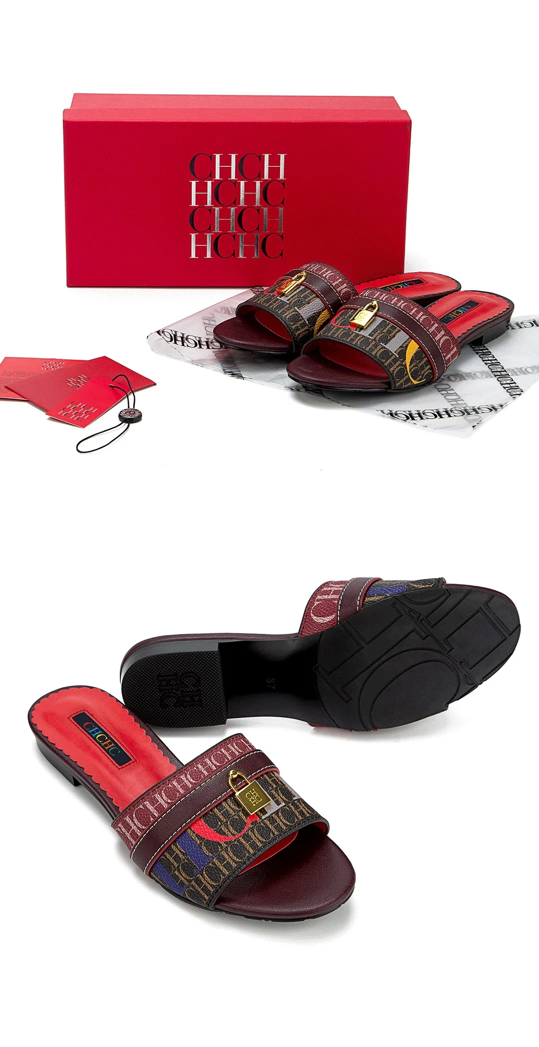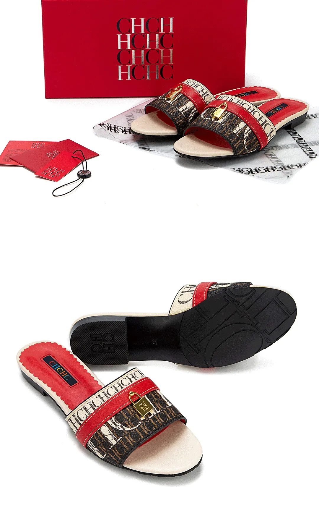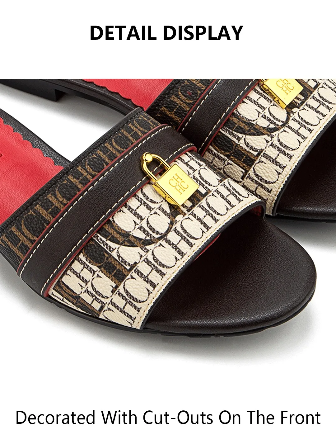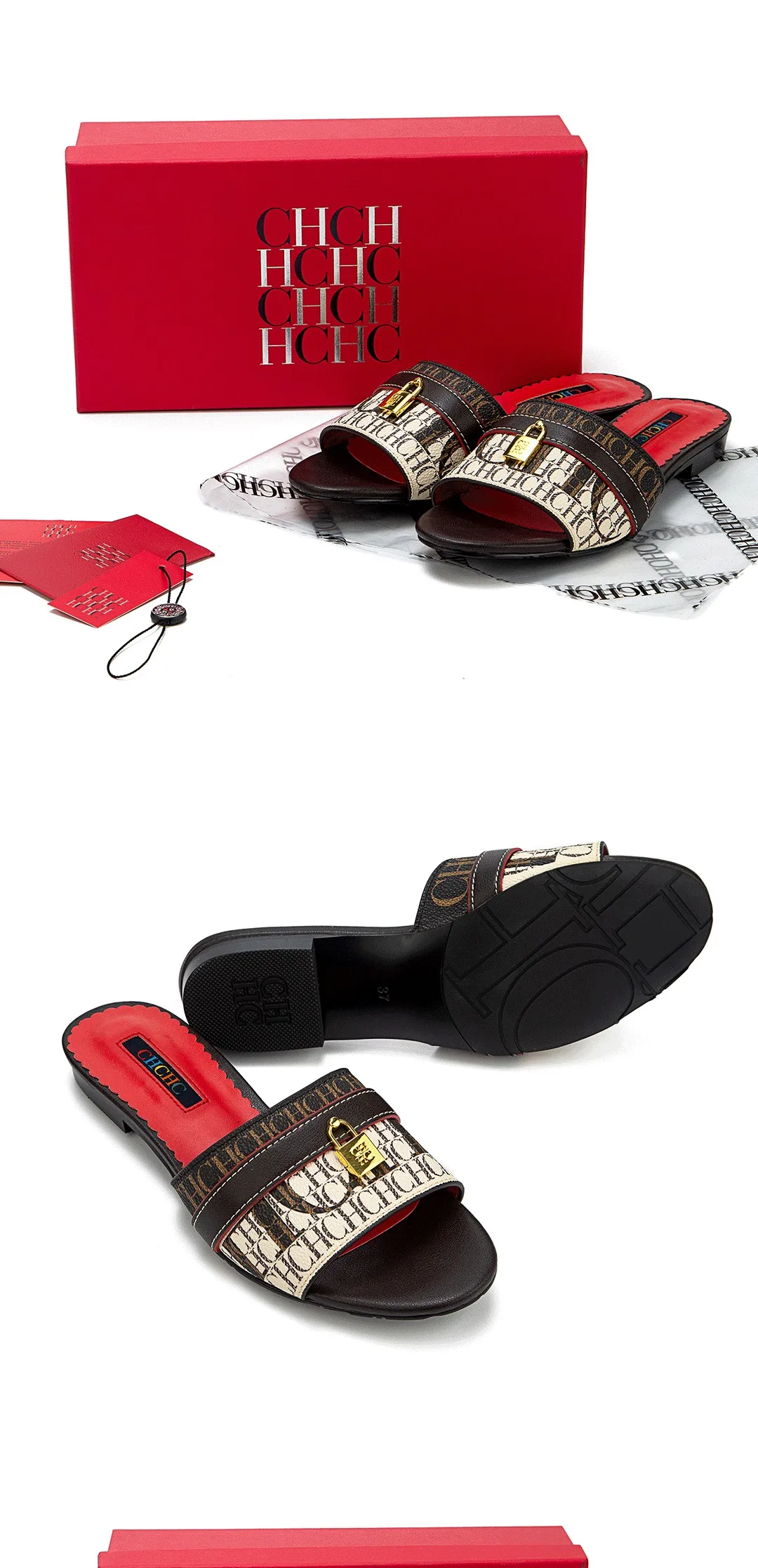 CH High Quality Metal Lock Monogram Print Women's Low Heeled Slippers Delicate and Versatile Women's Fashion Slippers