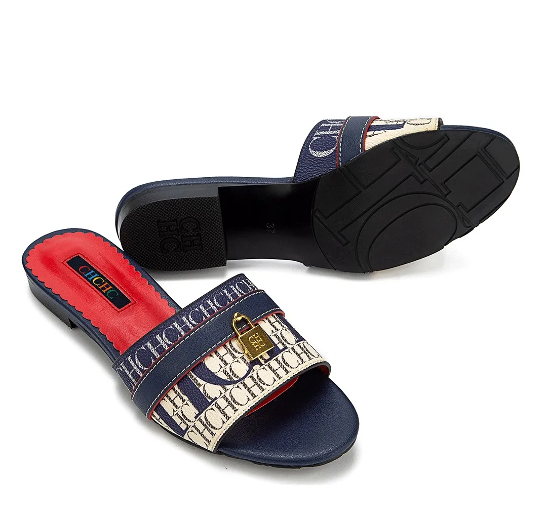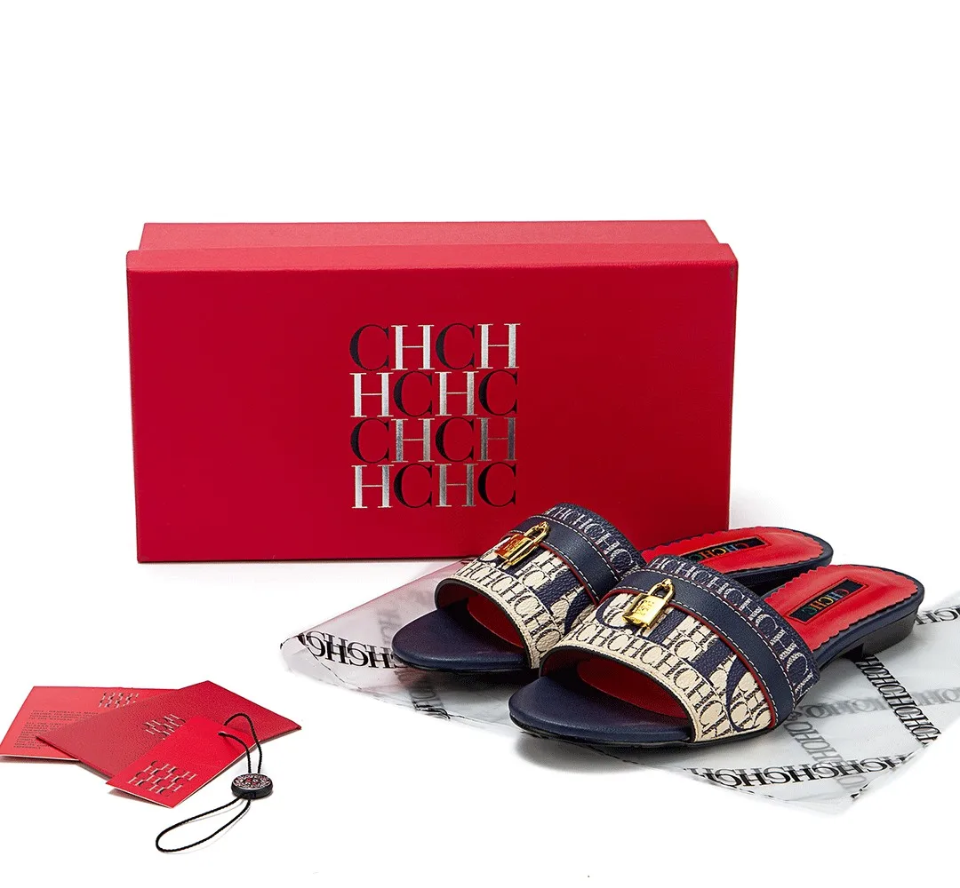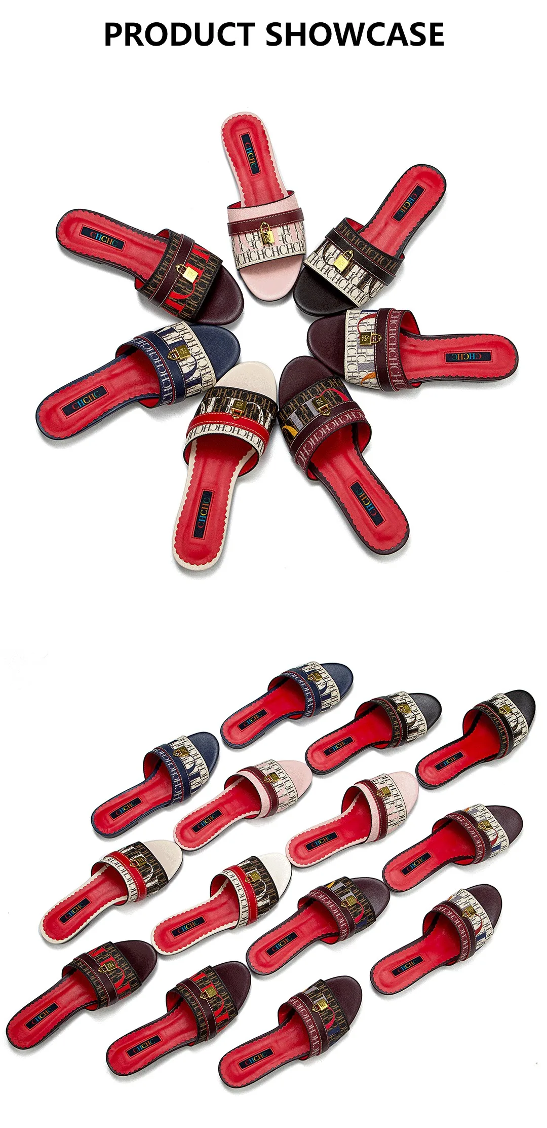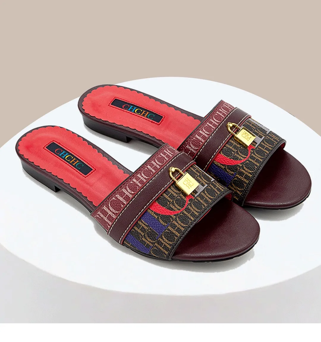 CH High Quality Metal Lock Monogram Print Women's Low Heeled Slippers Delicate and Versatile Women's Fashion Slippers